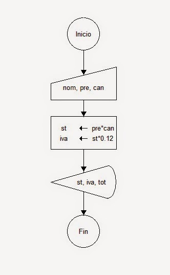 Ingrese el nombre, el precio y la cantidad de un producto a comprar. Calcule y visualice el subtotal, el 12% IVA y el total a pagar.